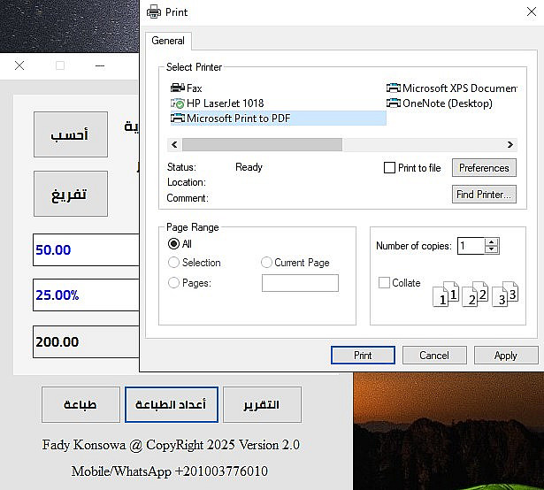 5. الحصول على نسخة PDF من تقرير الطباعة وحفظها على جهاز الكمبيوتر وذلك بالطغط على زرار أعداد الطباعة واختيار الطباعة ب PDF ثم بعد ذلك أطغط على زرار Print وبعد ذلك أضغط على زرار طباعة .