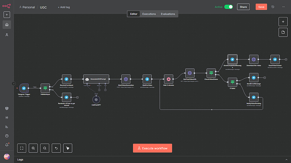 إنشاء نظام توليد فيديوهات UGC تلقائي باستخدام n8n و AI