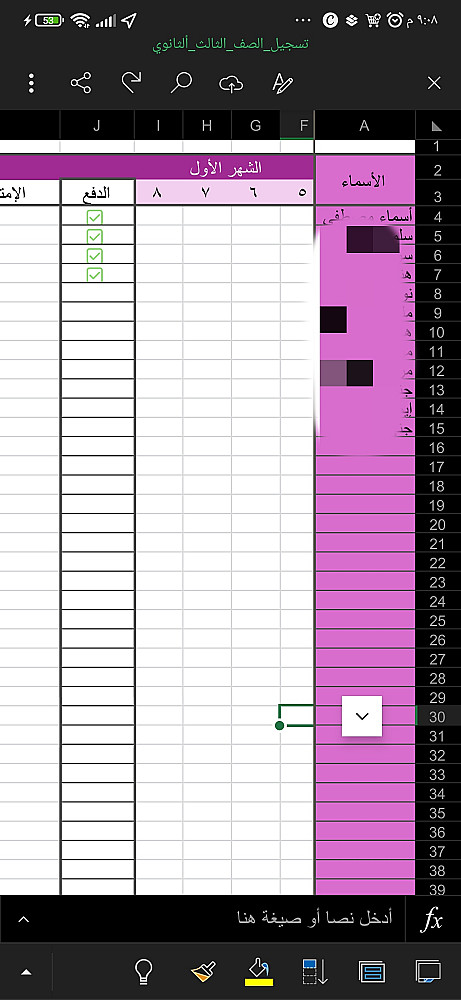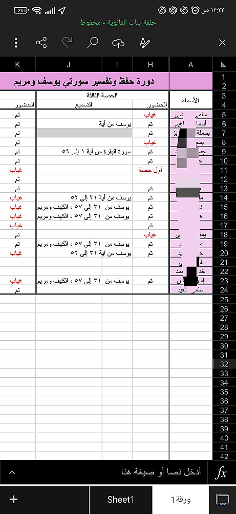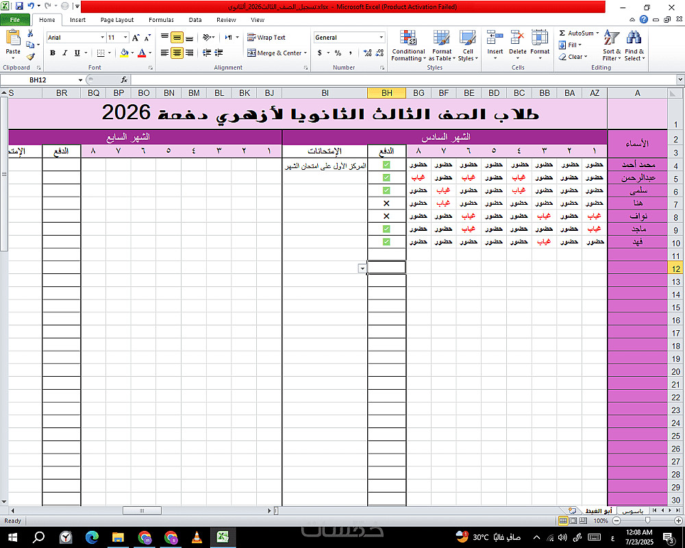 جدول Excel جاهز يساعدك على متابعة الغياب، الحضور، ودفع الاشتراكات، مناسب للمدرسين وأصحاب المراكز التعليمية.