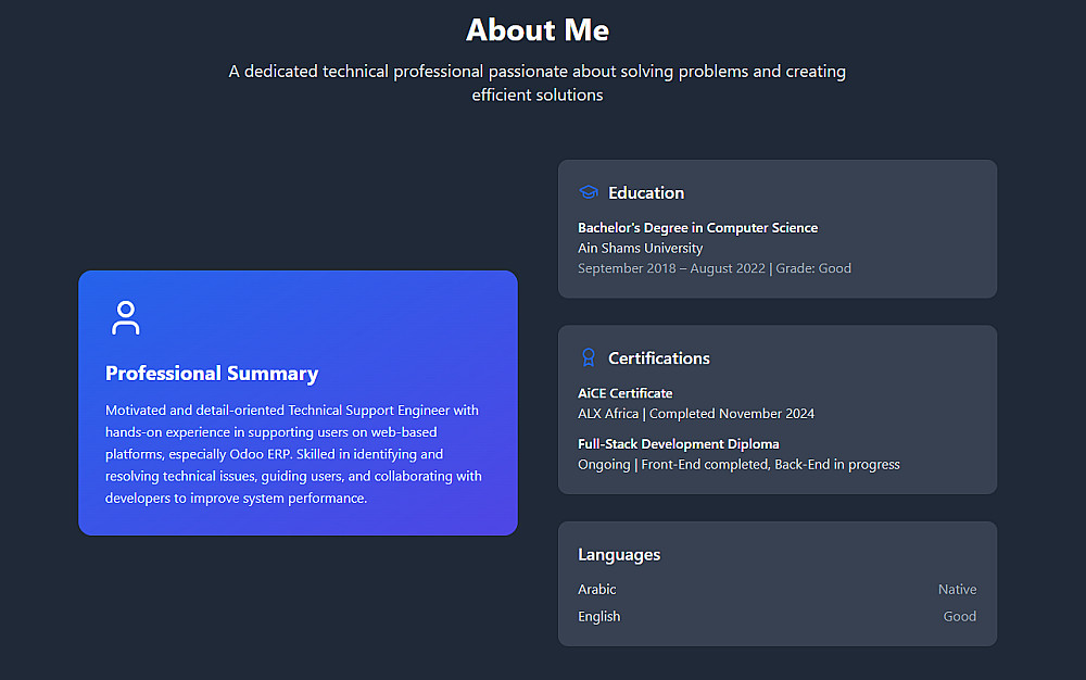 - تصميم متجاوب وجذاب يعرض نبذتك وأعمالك