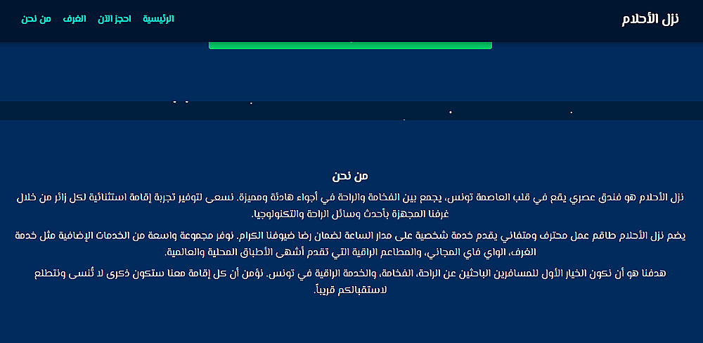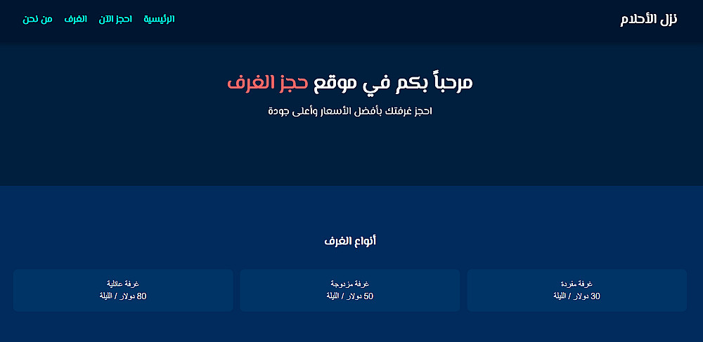 الموقع متجاوب مع جميع الشاشات، ويتميز بسرعة التحميل وسهولة الاستخدام، وهو مثالي لأي فندق أو نزل يبحث عن واجهة راقية وحجوزات مباشرة.