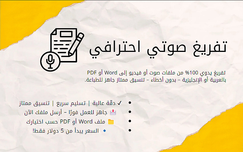 سأقوم بتفريغ ملفات صوتية أو مرئية (عربية أو إنجليزية) باحتراف ودقة عالية