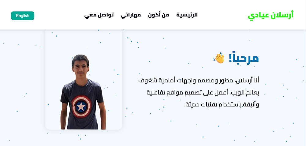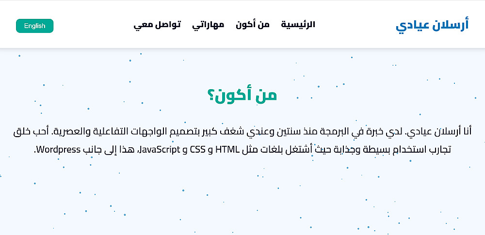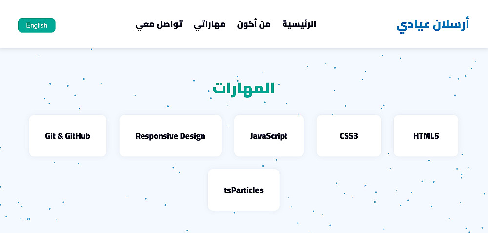 موقع شخصي احترافي لمصمم واجهات أمامية مع دعم لغتين وخلفية تفاعلية