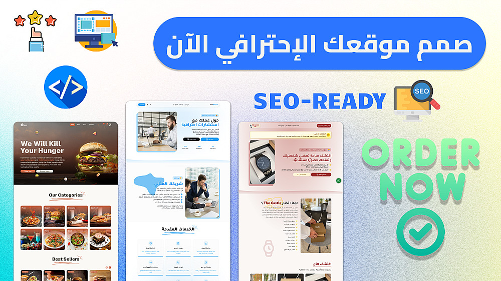 صمّم موقعك الاحترافي SEO Friendly وسريع الاستجابة لكل الأجهزة.
