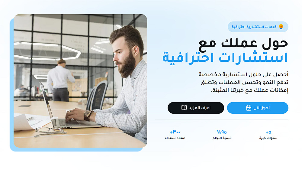 - موقع احترافي يتكون من صفحتين: الرئيسية صفحة تواصل معنا (مع إمكانية إضافة صفحات إضافية عبر تطويرات الخدمة)