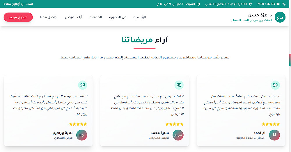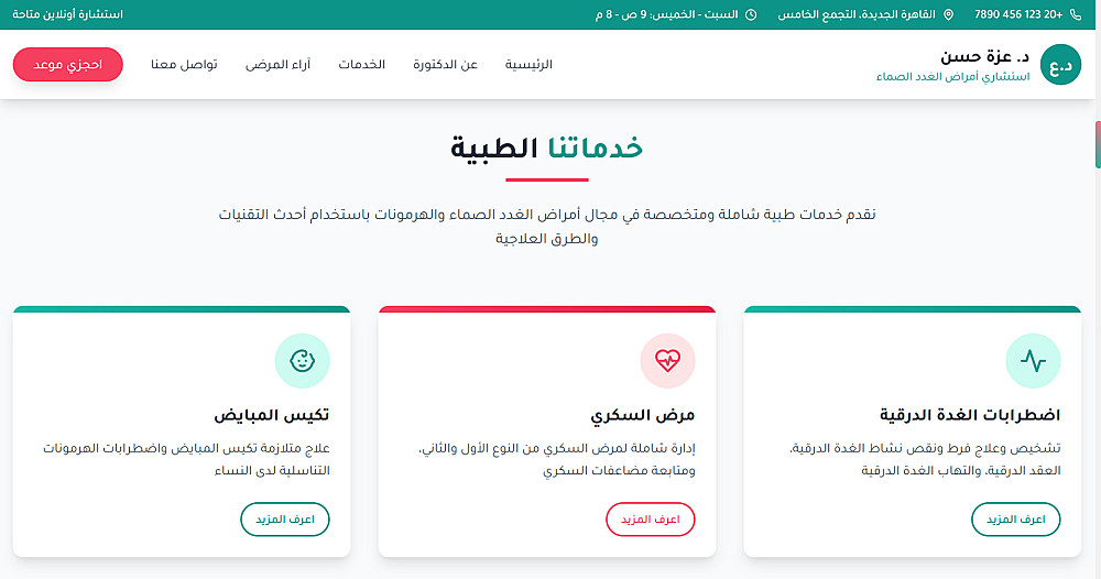 تصميم 3 أقسام مخصصة لتحقيق هدفك (مثل التعريف بالخدمة – المميزات – CTA – نموذج تواصل)