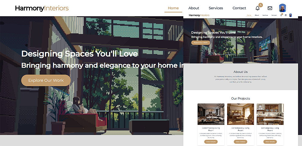 إضافة عناصر تفاعلية (مثل: أزرار ديناميكية، قوائم منسدلة، نماذج تواصل، أو مؤثرات بصرية مثل Scroll Animations).