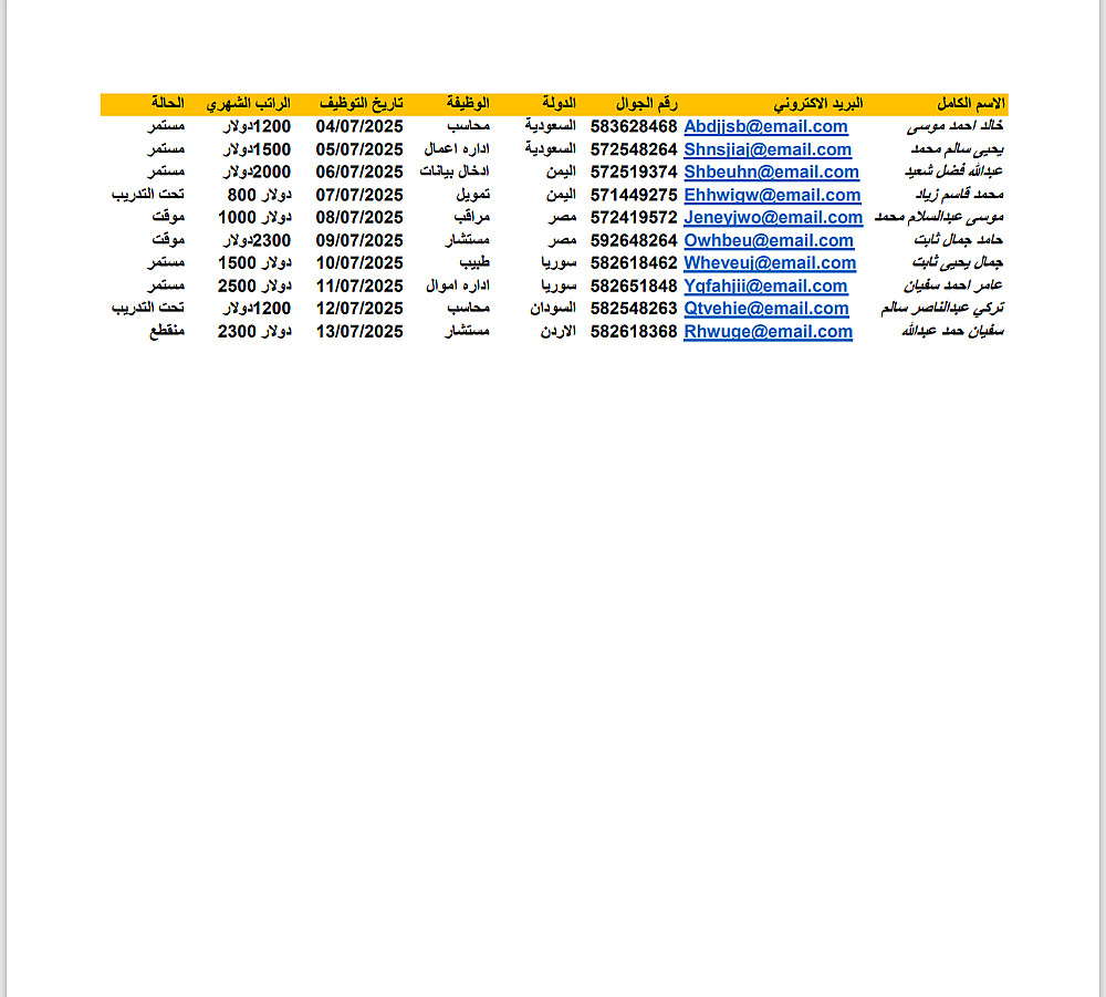 أنا جاهز لمساعدتك في إدخال بياناتك من ملفات PDF أو صور أو أوراق مكتوبة أو تسجيلات صوتية وتحويلها إلى ملفات Word أو Excel أو Google Sheets حسب طلبك.