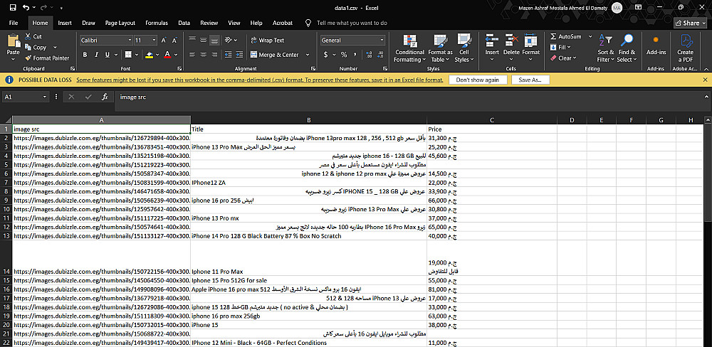 بأستخدام Python أقدر أساعدك و أستخرج البينات اللي انت تحبها بشكل آلي (Automated) و احفظها في نوع الملف اللي أنت تختاره.