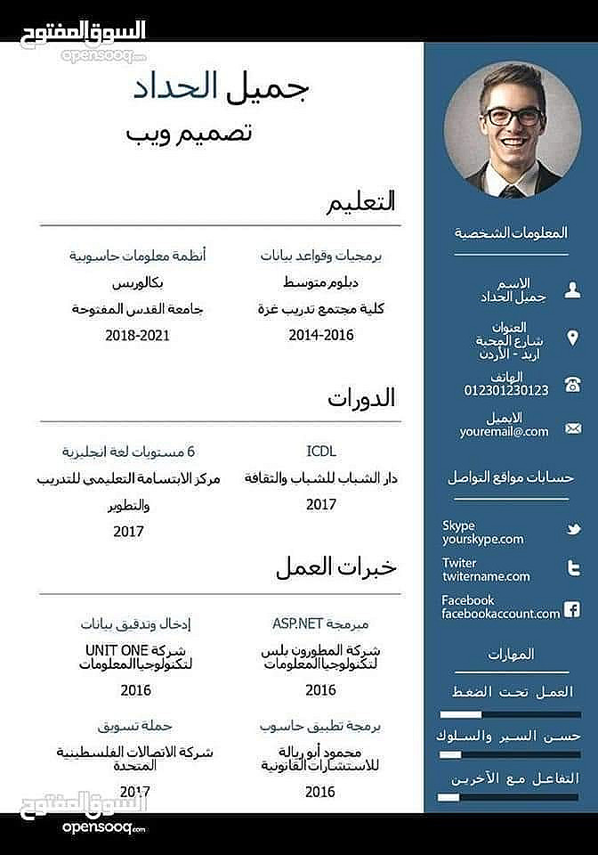كتابة سيرة ذاتية بالغتين العربية و الانجليزية