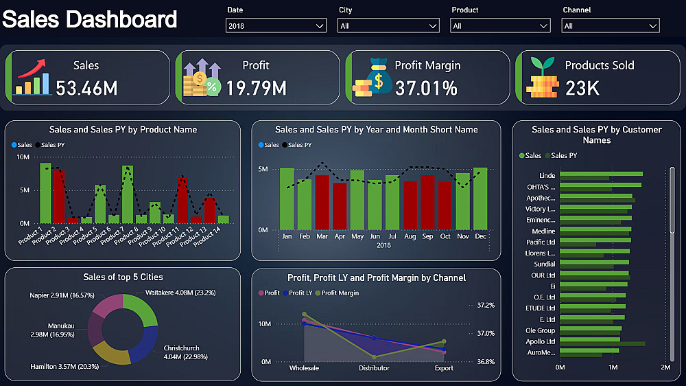 سأقدم لك لوحة تحكم تفاعلية تحتوي على مؤشرات الأداء KPIs، فلاتر للتصفية، وتصميم جذاب وسهل الاستخدام.