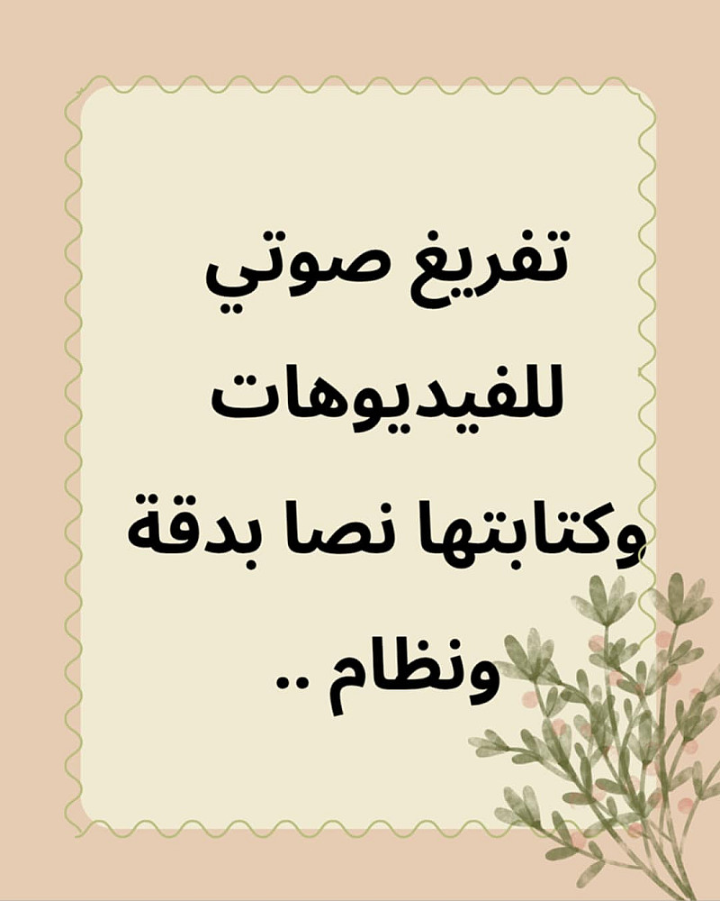 "أقدم خدمة تفريغ أي تسجيل صوتي أو محاضرة أو مقابلة إلى نص مكتوب بدقة عالية بالعربية أو الإنجليزية.