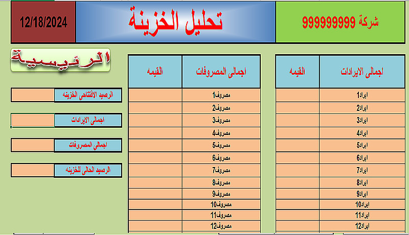 ملف اكسيل للخزينة