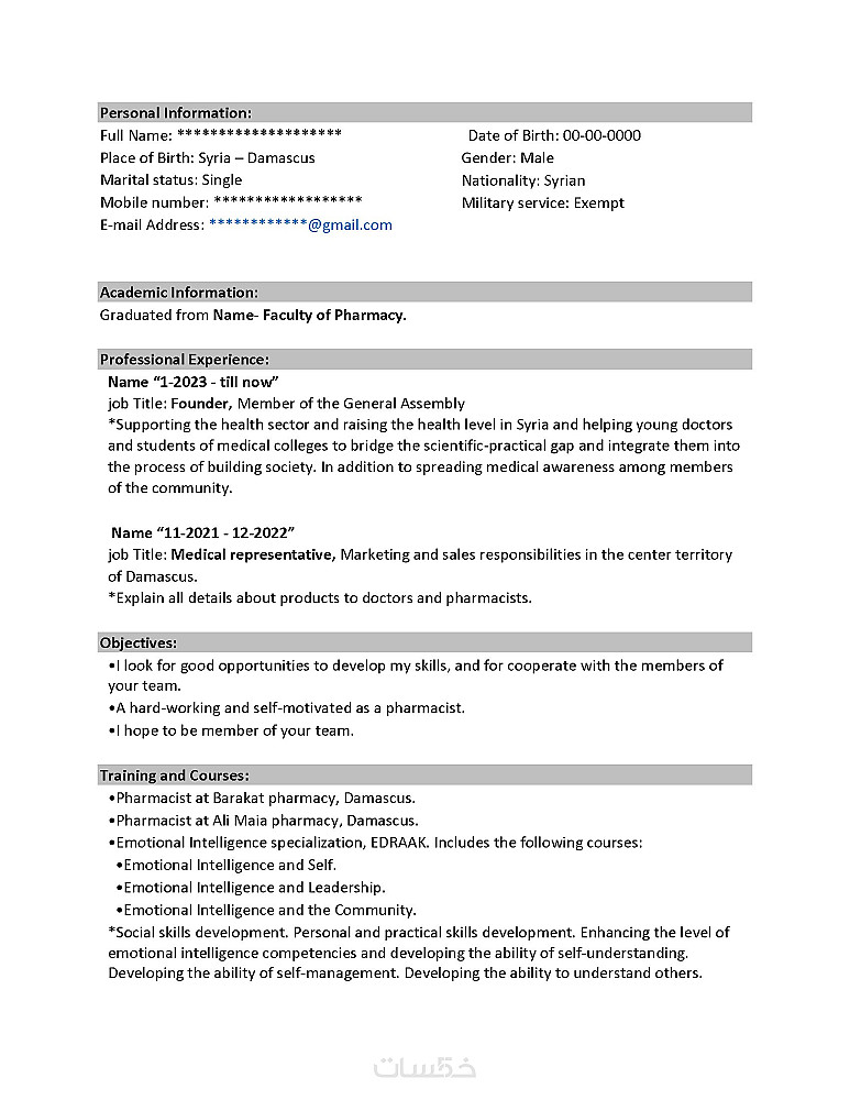 كتابة وتصميم سيرة ذاتية احترافية باللغتين العربية والإنكليزية