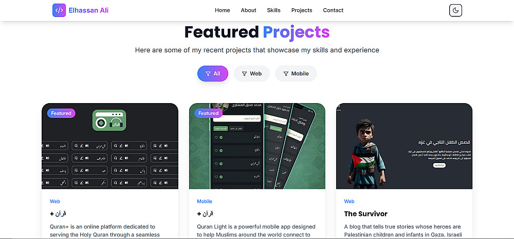 هل تبحث عن وجود على الإنترنت يمكنه عرض موهبتك وأعمالك الإبداعية بشكل استثنائي؟ هل ترغب في إنشاء تجربة رقمية تبرز مهاراتك وإنجازاتك في مكان واحد؟ سأقوم بتصميم وتطوير موقع شخصي Portfolio متميز يعكس هويتك ويعرض أعمالك بشكل جذاب واحترافي.