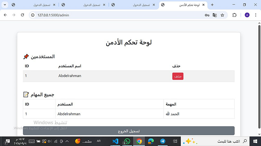 كل مستخدم يضيف ويحذف مهامه الخاصة.