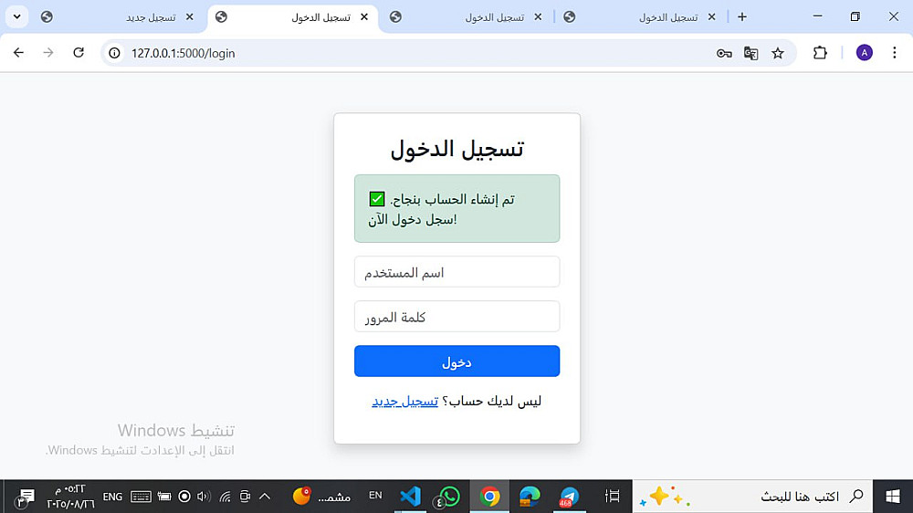 تسجيل مستخدم جديد وتسجيل الدخول.