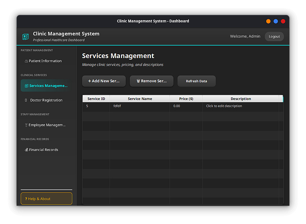 5- قسم services Management لأداره الخدمات مثال لعياده اسنان خدمه حشو السعر 5دولار الوصف الخ