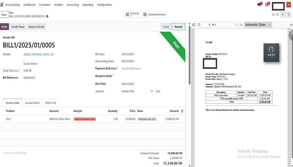 إدخال 23 فاتورة في نظام أودوو – موديول الحسابات