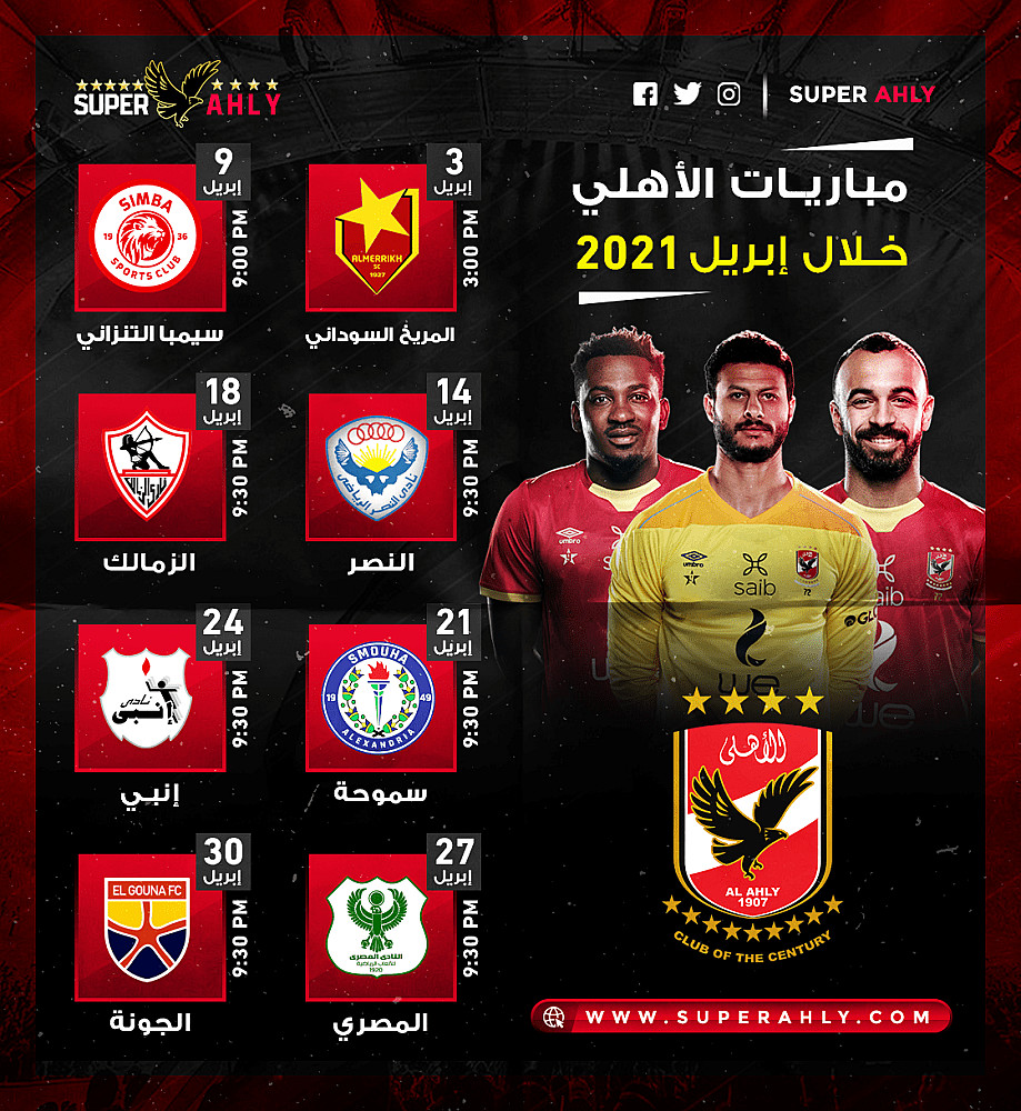 - حسابات فيس بوك وإنستجرام وتويتر ويوتيوب الرياضية.