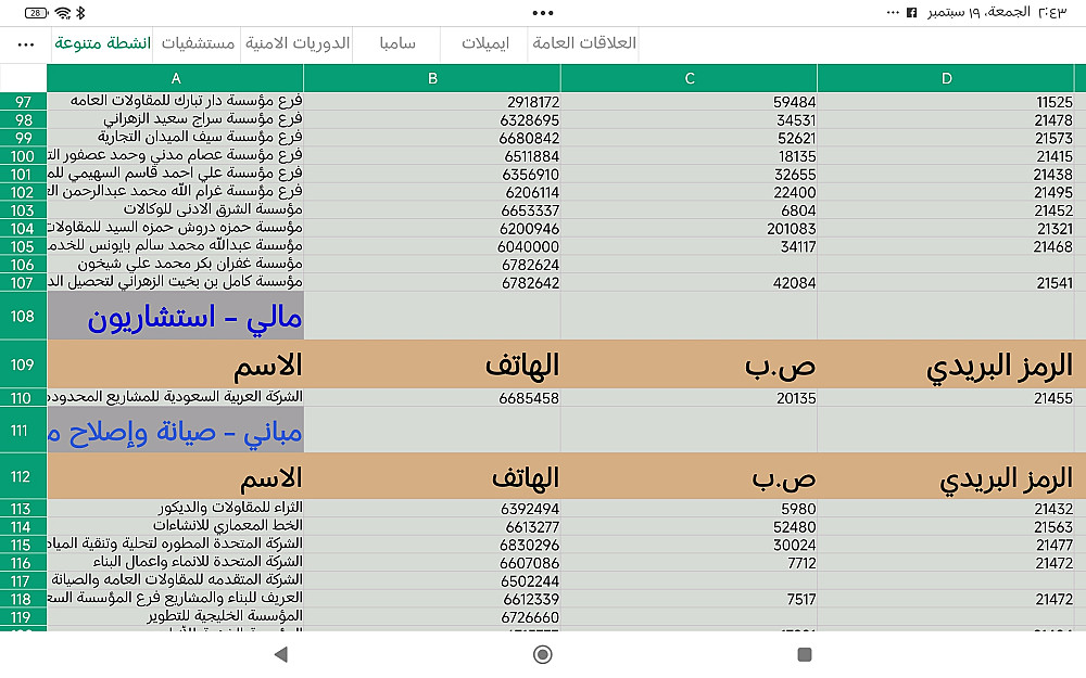 أقدّم لك قاعدة بيانات ضخمة تشمل أكثر من 25,000 شركة سعودية متنوعة (تجارية – صناعية – خدمية – مقاولات – تقنية – طبية – وغيرها)، مُصنّفة ومنظمة بشكل يسهل البحث والاستخدام.