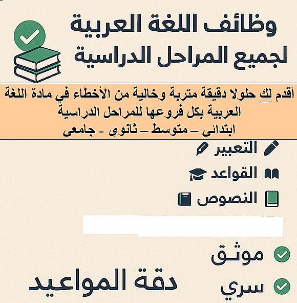 حل وظائف وأسئلة وامتحانات اللغة العربية لجميع المراحل