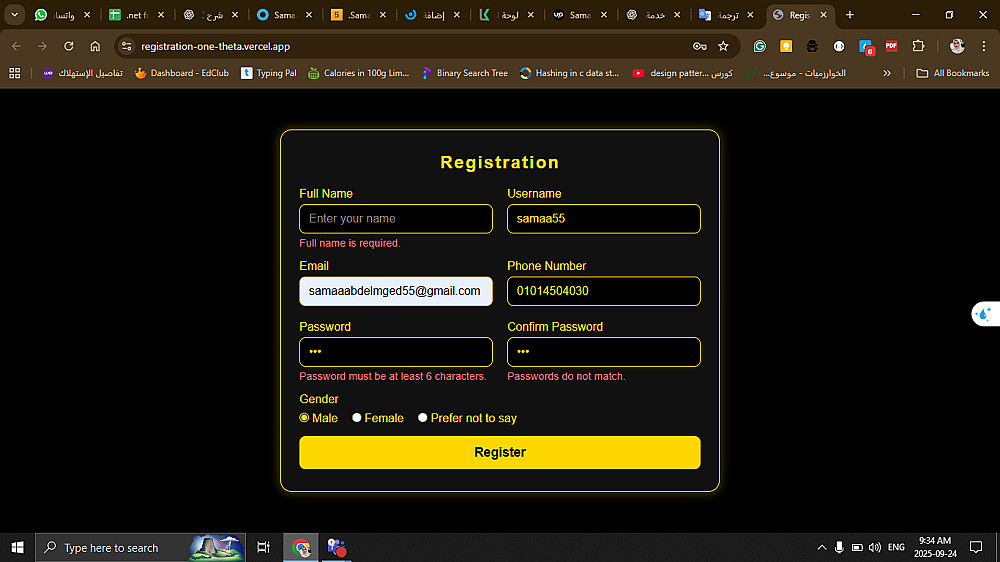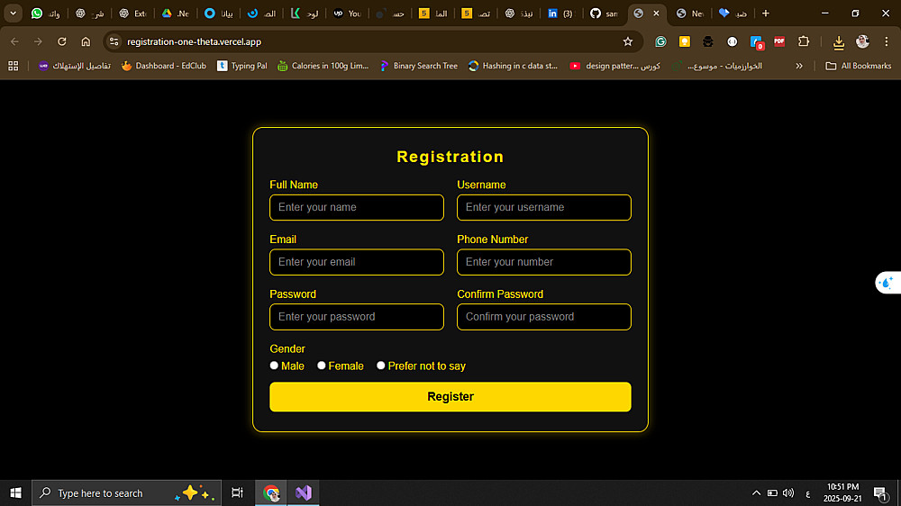 سأقوم بتصميم نموذج Login Form باستخدام أحدث تقنيات HTML5 + CSS3 + JavaScript (ES6) جاهز للعمل فورًا على موقعك.