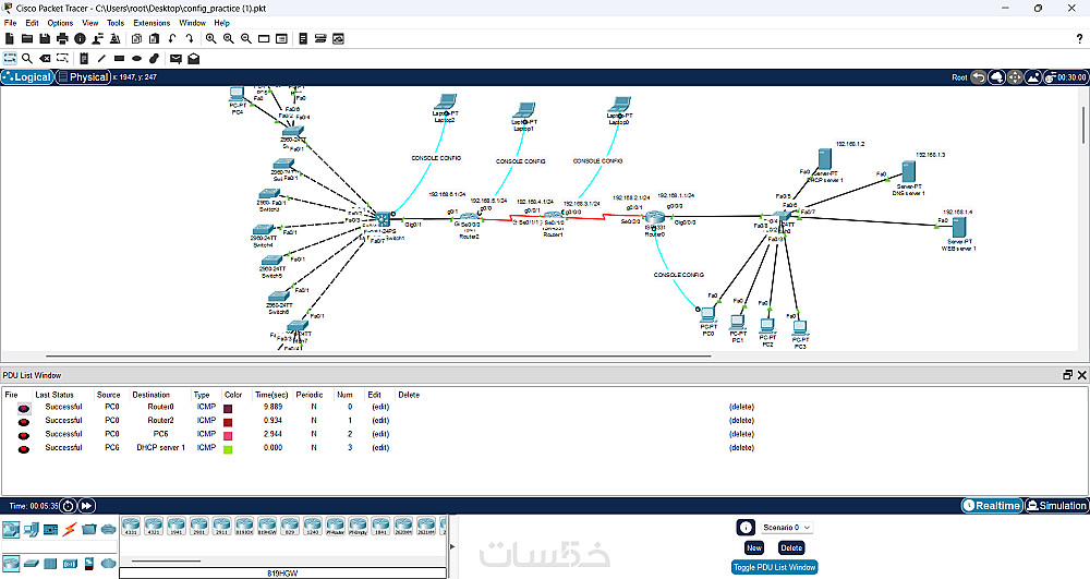 تسليم ملف Packet Tracer جاهز شرح للخطوات.
