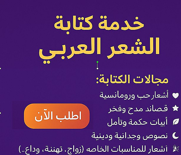 أقدّم لك خدمة تأليف قصائد وأبيات شعرية مصاغة بعناية لتناسب كل مناسبة خاصة أو عامة: