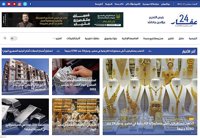 – موقع إخباري متخصص في العقارات، الاقتصاد، والاستثمار، وله جمهور متابع من داخل مصر وخارجها.