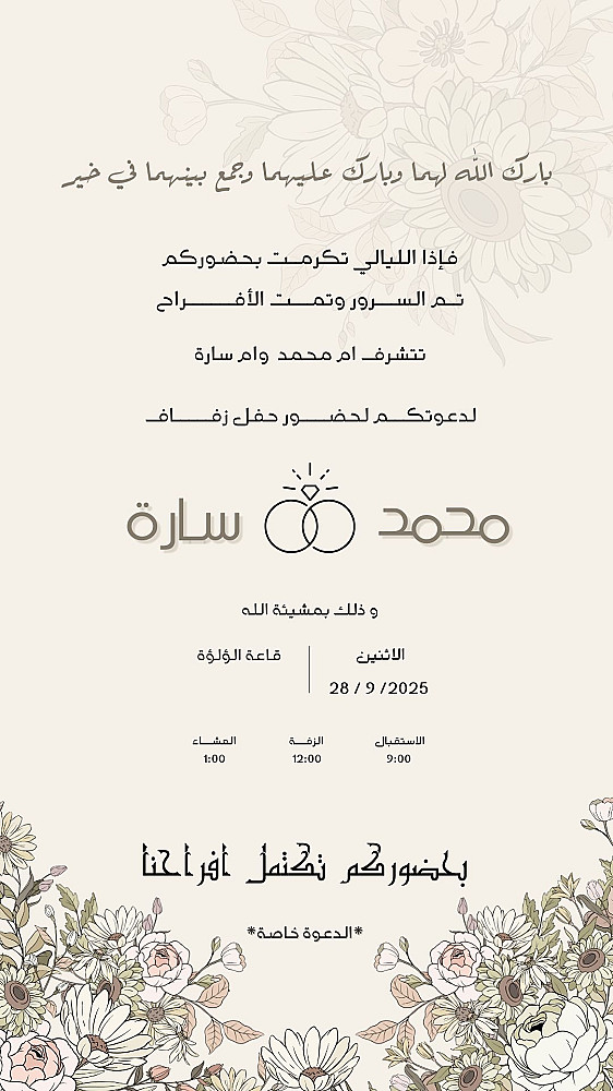 هل انت مقبل على زواج او عيد ميلاد او لديك حفلة قريبة و تريد بطاقة رائعة و انيقة ؟