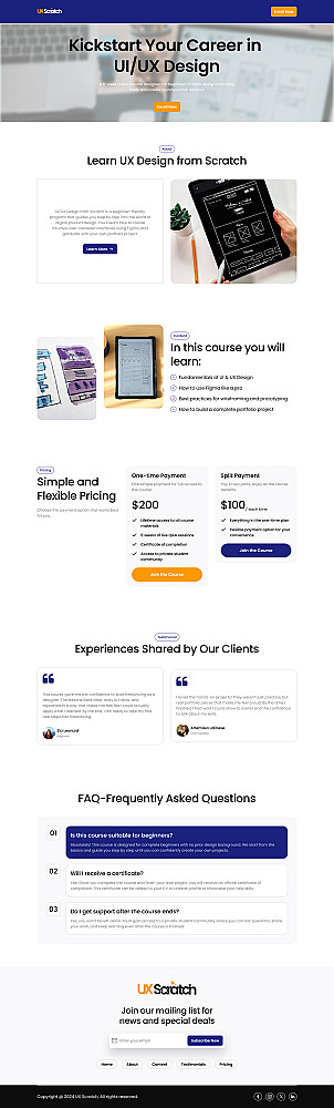 2. الأقسام الأساسية (Nav Bar | Hero Section | About Us | Features & Services | CTA | Footer).