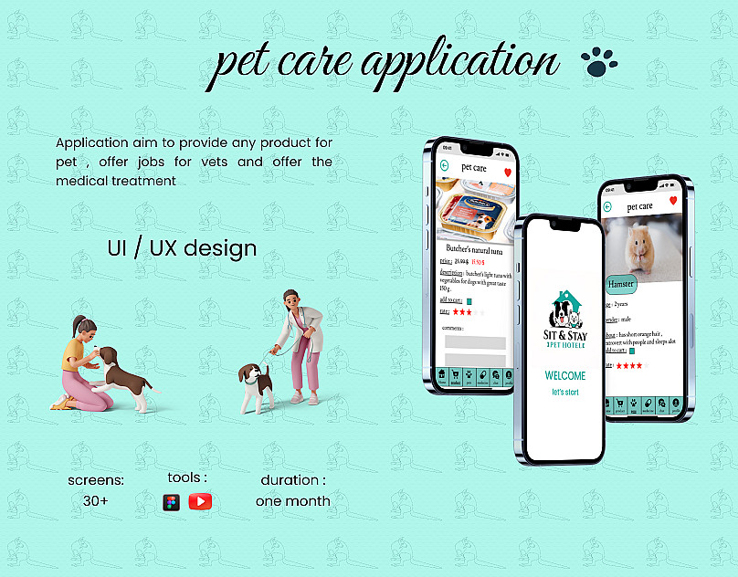 تصميم واجهة وتجربة مستخدم لتطبيق حيوانات أليفه UI/UX