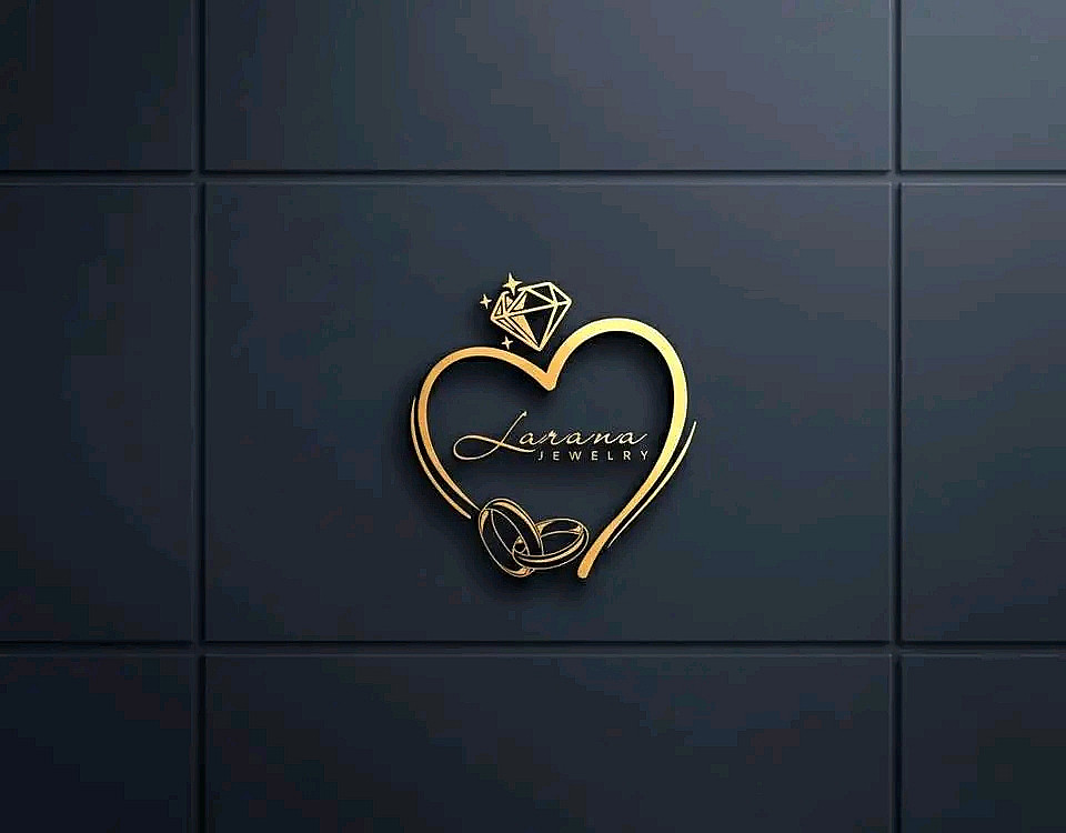 داخل القلب مكتوب اسم العلامة التجارية بخط أنيق: Larana Jewelry، حيث كلمة Larana مكتوبة بخط كاليغرافي فخم، وأسفلها كلمة Jewelry بحروف إنجليزية بسيطة لتمنح توازنًا بين العصرية والكلاسيكية.