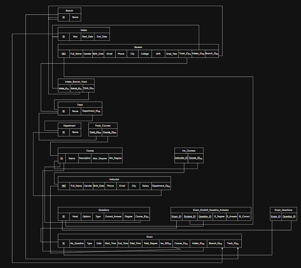 - رسم تخطيطي (ERD) يوضح العلاقات بين الجداول والكيانات المختلفة، يساعدك على فهم النظام بالكامل بشكل بصري قبل التنفيذ.