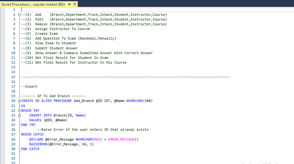 - إنشاء 3 إجراءات مخزنة (Stored Procedures) لتنفيذ عمليات متكررة بدون الحاجة لكتابة أكواد