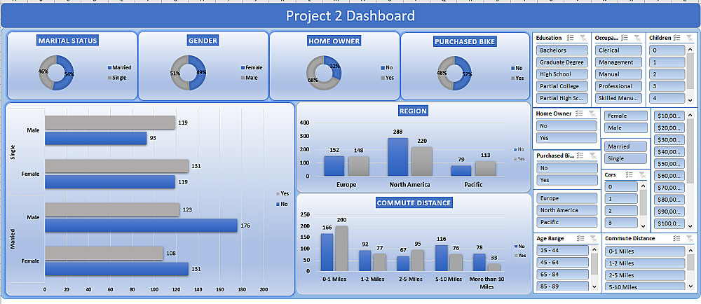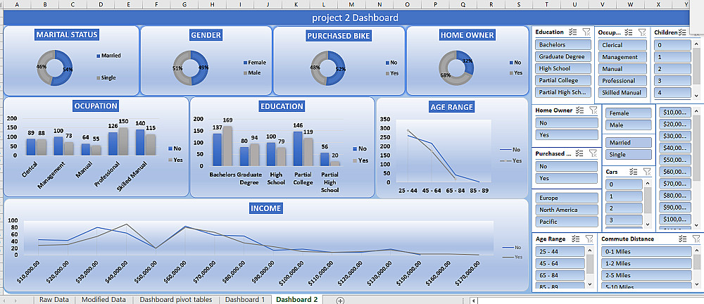 مرئيات قوية (Visualizations): استخدام 4 أنواع الرسوم البيانية (Charts)، مع 4 من جداول ال pivot tables.