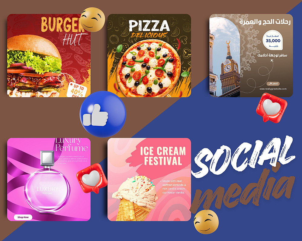 سأقوم بتصميم منشورات التواصل الاجتماعي الإبداعية وإعلانات الفيسبوك ومنشورات الانستغرام والقصص وصور الإعلانات