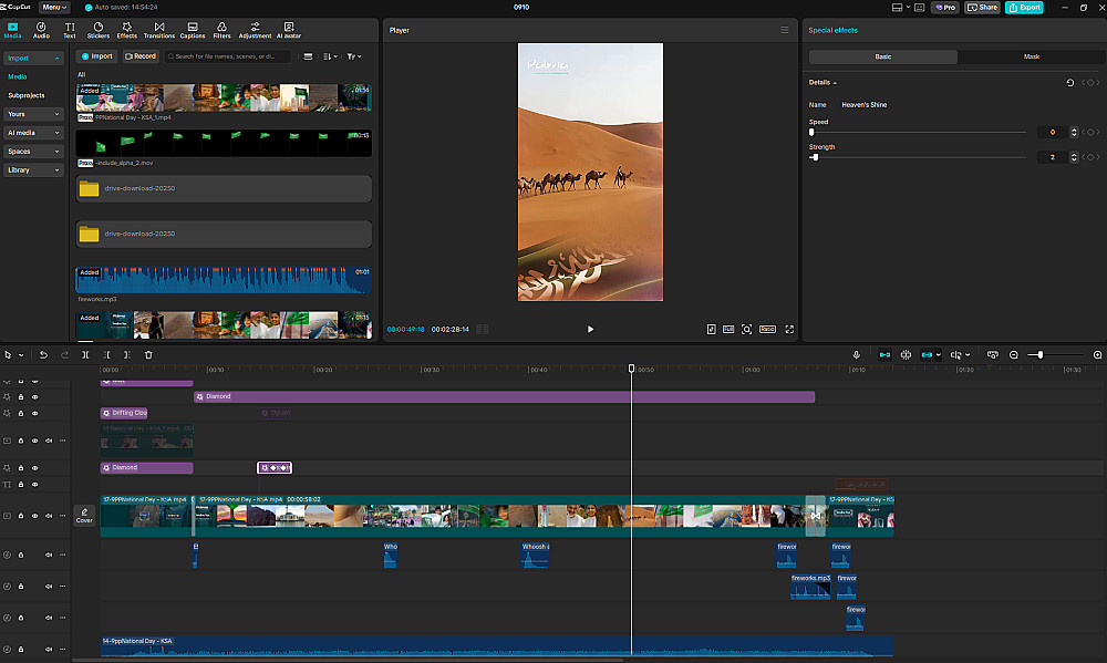 - دمج صورك أو فيديوهاتك مع شخصية أو لقطات بالذكاء الاصطناعي.