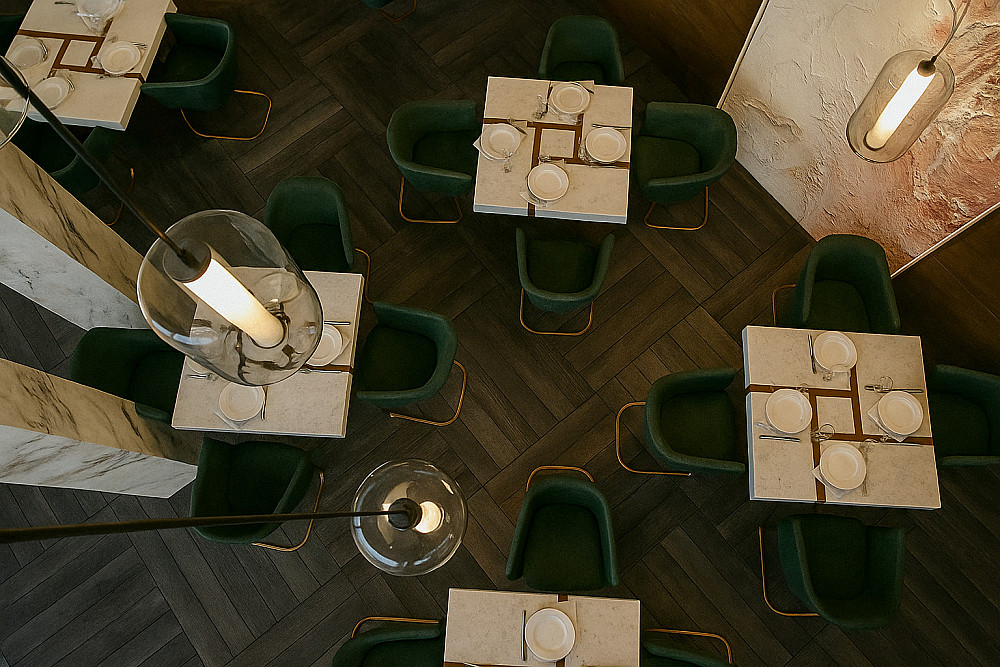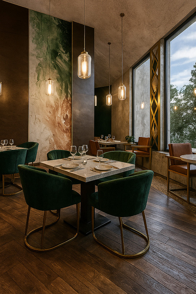 أحرص على الجمع بين الجانب الجمالي والوظيفي، مع مراعاة الهوية البصرية للمطعم، حركة الزبائن، وإدارة الإضاءة والألوان بشكل يعكس طابع المكان ويزيد من راحة العملاء