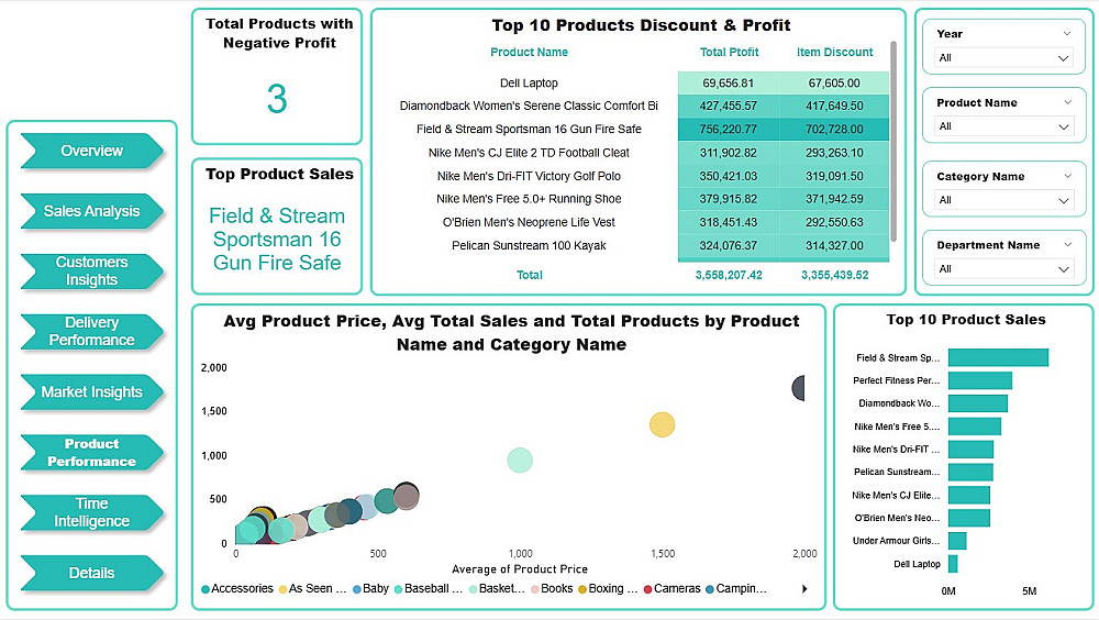 1-تحليل أداء المبيعات (المنتجات، الفئات، الإيرادات).
