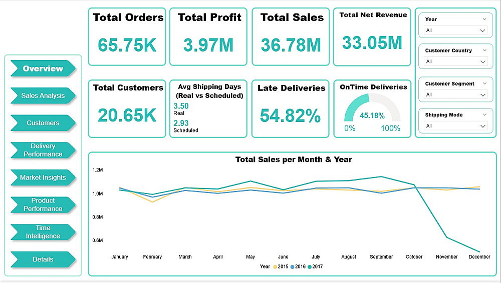 4-تصميم لوحة تحكم (Dashboard) تفاعلية تعرض أهم المؤشرات (KPIs).
