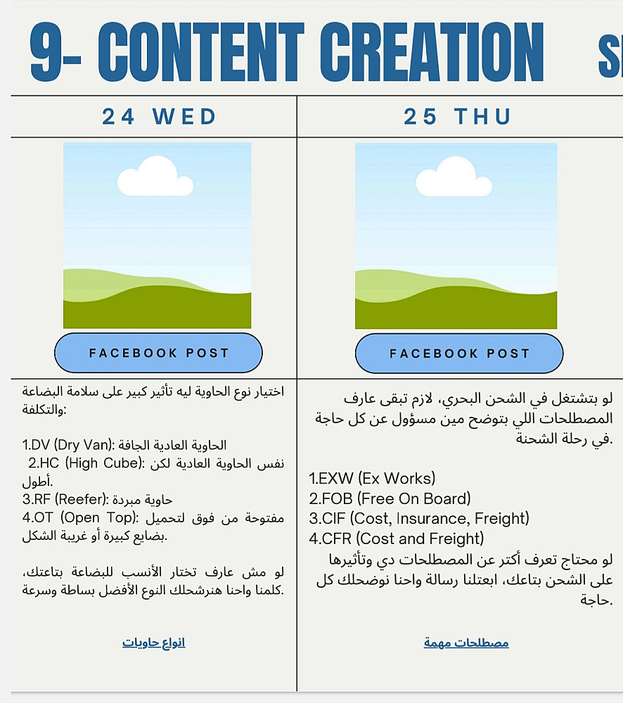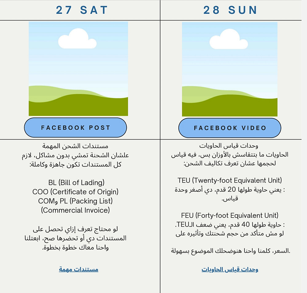 انشاء content calendar من اجل التسويق لصفحة الفيس بوك