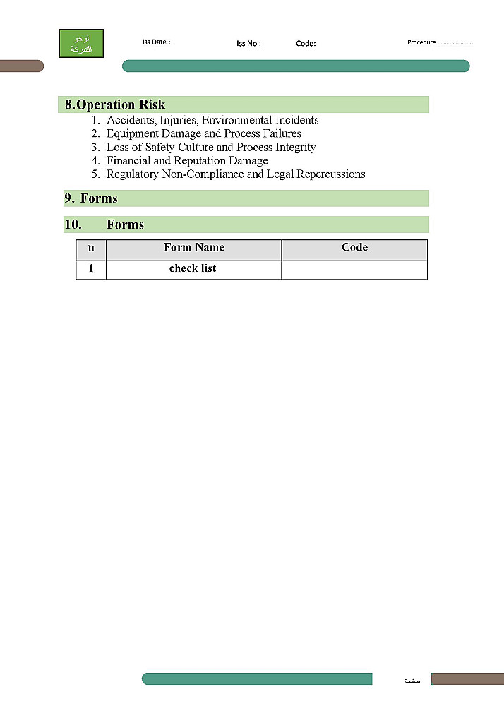- الاجراء مكون من 10 نقاط شاملة علي سبيل المثال لا الحصر( الغرض من الاجراء - وخطوات الاجراء )