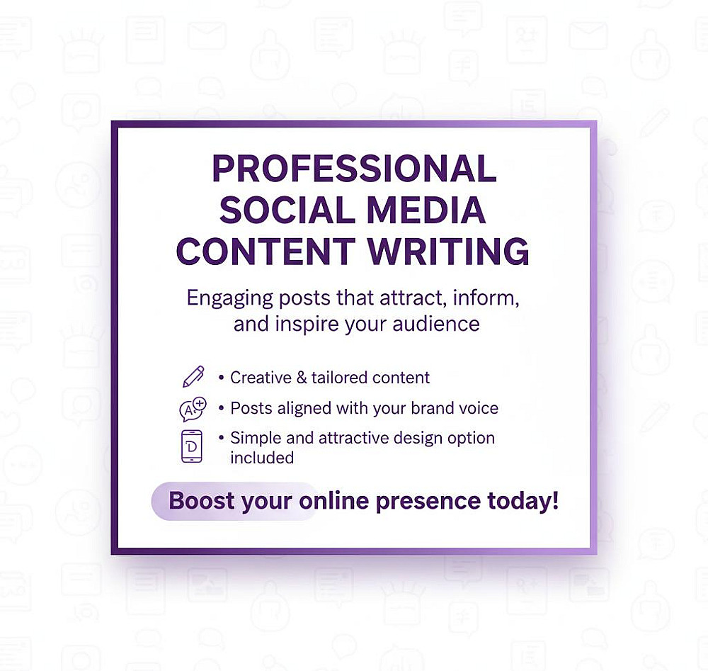 وكميزة إضافية، أقدر أقدملك ديزاين بسيط للبوسـت (صور أو خلفيات خفيفة) عشان المحتوى يطلع متكامل وجاهز للنشر.
