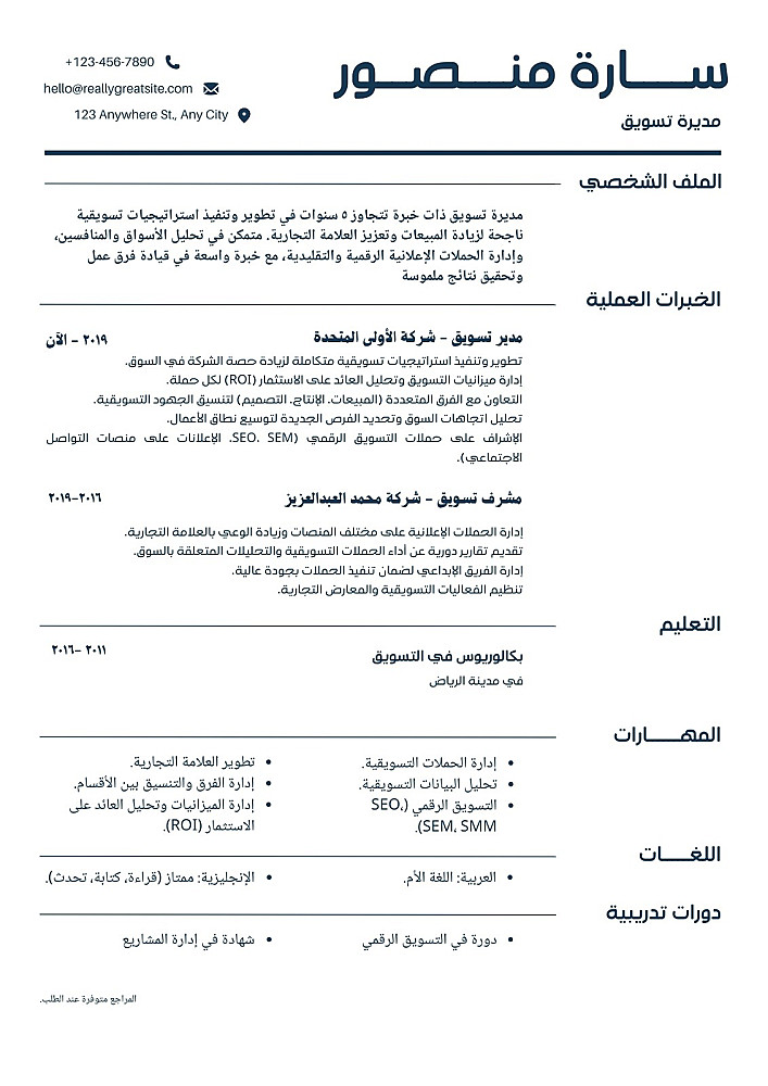 تصميم سيرة ذاتية احترافية باللغة (العربية / الإنجليزية).