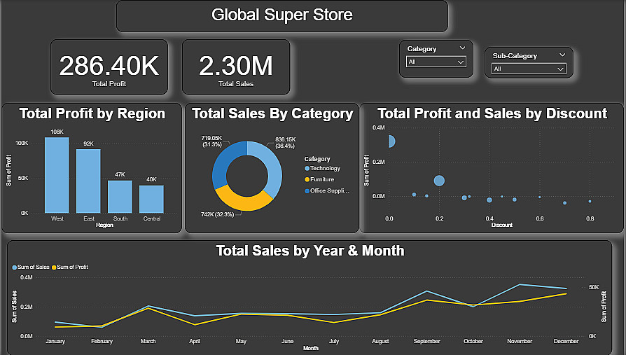 لوحات معلومات تفاعلية (Dashboards): إنشاءDashboard ديناميكية واحدة تحتوى على خمس رسومات بيانية