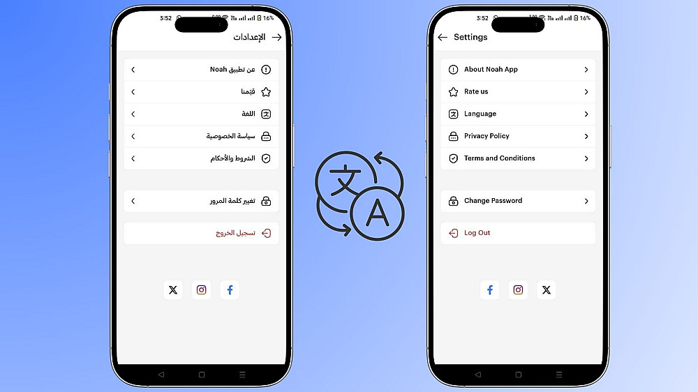 وتطبيق الترجمة على ٣ صفحات من التطبيق فقط (مثل: صفحة الدخول – الرئيسية – الإعدادات).
