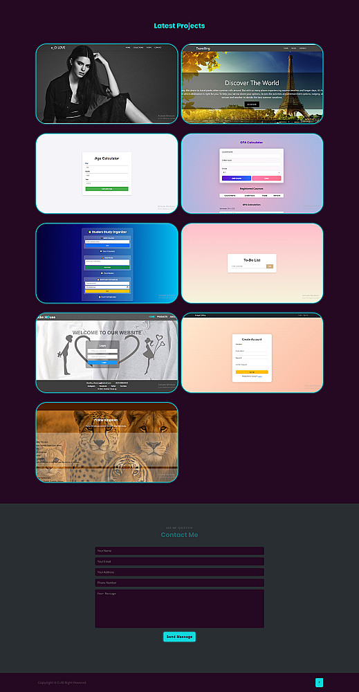 أقدّم لك خدمة تصميم بورتفوليو شخصي متكامل باستخدام HTML, CSS, وJavaScript بتصميم حديث، متجاوب وسهل التصفح على جميع الأجهزة.