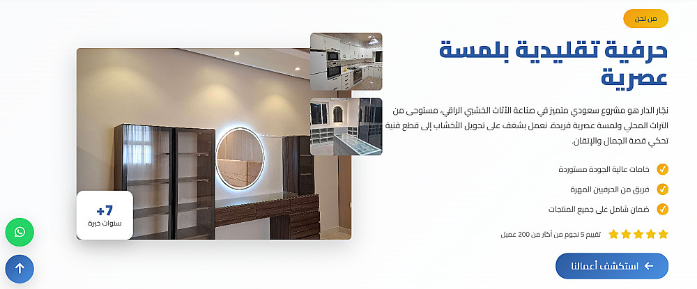 الموقع مثالي لأصحاب المشاريع الحرفية مثل النجارين والحدادين والديكور وغيرهم، ويعكس احترافية في تنفيذ التصميم.